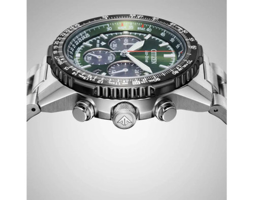 Armbanduhr Citizen Eco-Drive CA4664-60W für Herren mit Quarzwerk, Uhrengehäuse aus Edelstahl mit einem Durchmesser von 40 mm, Ziffernblatt Grün und Uhrenarmband aus Edelstahl in der Farbe Silber.