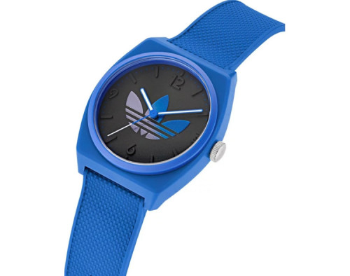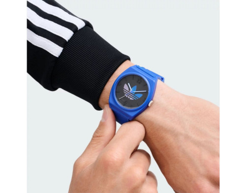 Reloj de pulsera Adidas Project Two GRFX AOST24553 para Unisex con movimento de Cuarzo, con caja de Plástico con diàmetro de 38 mm, con cuadrante Negro y correa en Silicona, color Azul.