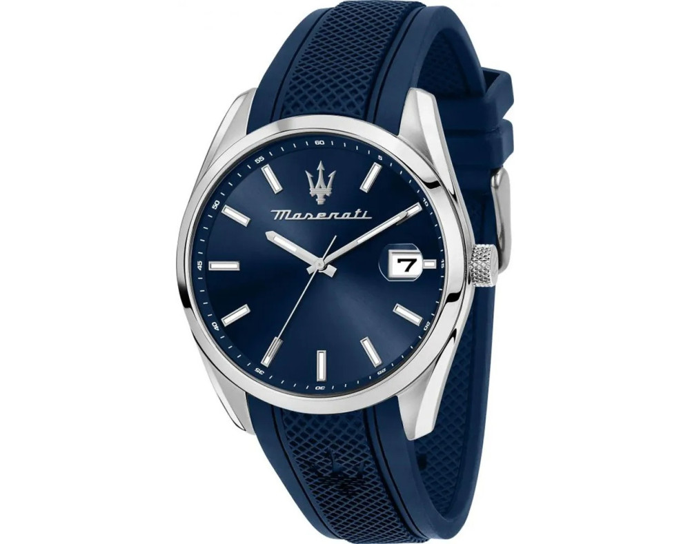Reloj de pulsera Maserati Attrazione R8851151005 para Hombre con movimento de Cuarzo, con caja de Acero inoxidable con diàmetro de 43 mm, con cuadrante Azul y correa en Silicona, color Azul.