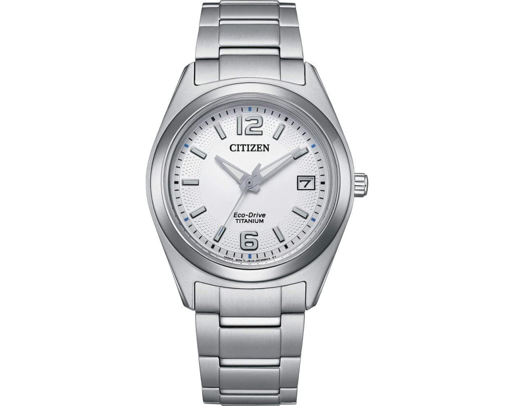 Reloj de pulsera Citizen Eco-Drive Super-Titanium FE6151-82A para Mujer con movimento de Cuarzo, con caja de Titanio con diàmetro de 34 mm, con cuadrante Blanco y correa en Titanio, color Plateado.