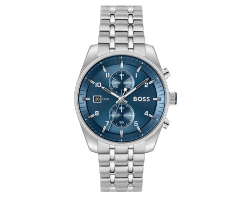 Kvarts Mees Käekell Hugo Boss 1514216, Roostevaba teras korpusega, läbimõõduga 44 mm, Mineraal klaasist, Sinine sihverplaadi ja Hõbedane Roostevaba...