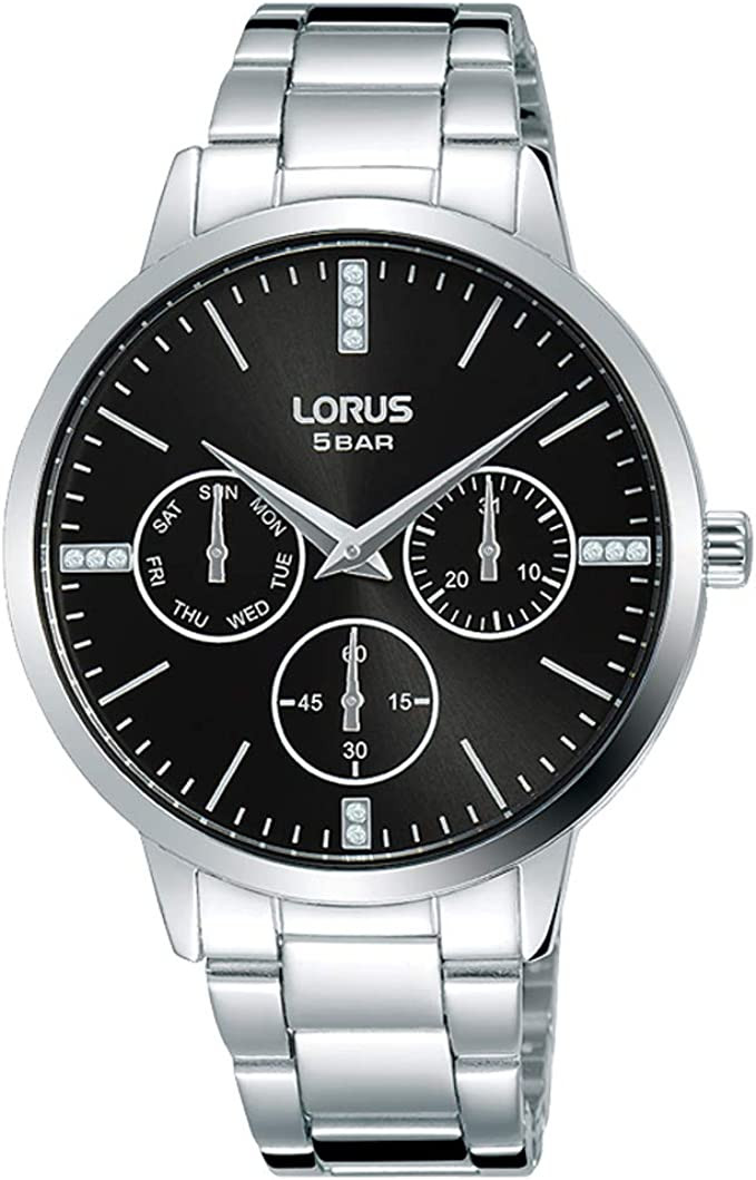 Kvarts Naine Käekell Lorus RP631DX9, Roostevaba teras korpusega, läbimõõduga 36 mm, Mineraal klaasist, Must sihverplaadi ja Hõbedane Roostevaba teras rihm.