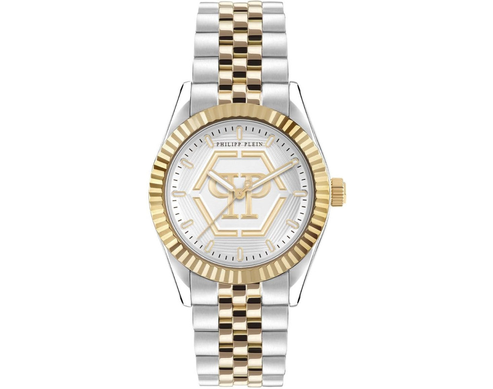 Kvarts Naine Käekell Philipp Plein PW2BA0323, Roostevaba teras korpusega, läbimõõduga 38 mm, Mineraal klaasist, Hõbedane sihverplaadi ja Kahetooniline Roostevaba teras rihm.