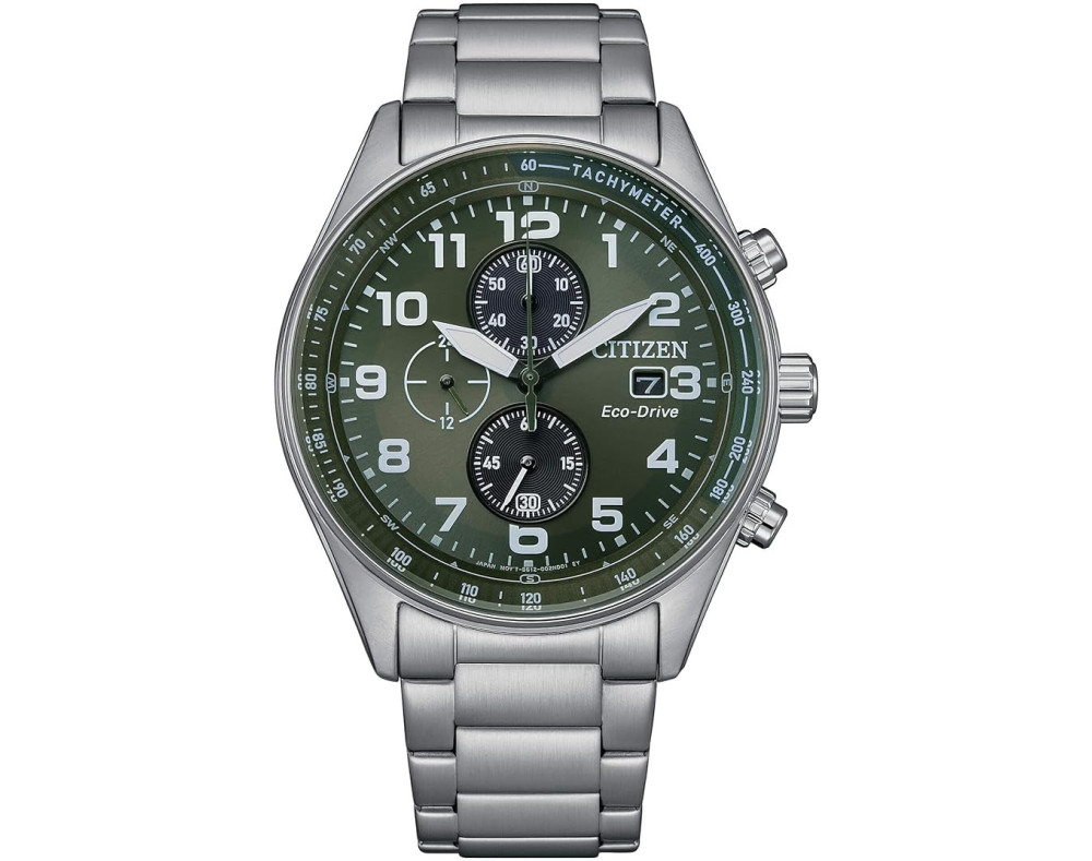 Kvarts Mees Käekell Citizen CA0770-72X, Roostevaba teras korpusega, läbimõõduga 43 mm, Mineraal klaasist, Roheline sihverplaadi ja Hõbedane Roostevaba teras rihm.