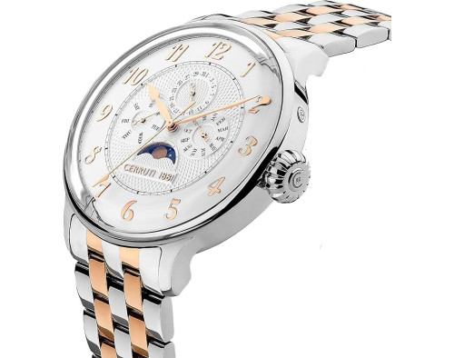 Montre bracelet Cerruti 1881 Dervio CIWGK2205702 pour Homme à Quartz, avec une boîtier de Acier inoxydable d’un diamètre de 45 mm, avec un cadran Blanc et avec un bracelet de Acier inoxydable en couleur Deux tons.