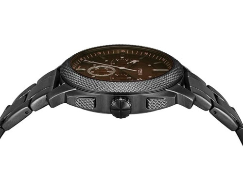 Montre bracelet Fossil Machine FS6097 pour Homme à Quartz, avec une boîtier de Acier inoxydable d’un diamètre de 44 mm, avec un cadran Marron et avec un bracelet de Acier inoxydable en couleur Noir.