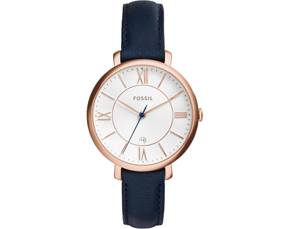 Montre bracelet Fossil Jacqueline ES3843 pour Femme à Quartz, avec une boîtier de Acier inoxydable d’un diamètre de 36 mm, avec un cadran Blanc et avec un bracelet de Cuir en couleur Bleu.