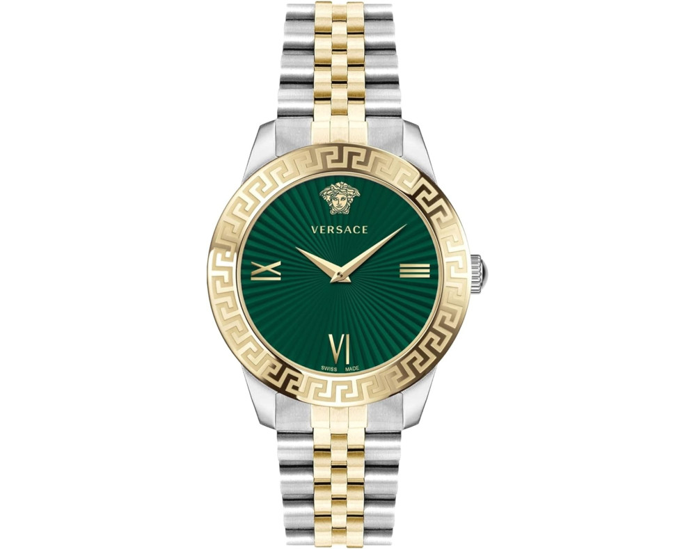 Montre bracelet Versace Greca Signature VEVC01021 pour Femme à Quartz, avec une boîtier de Acier inoxydable d’un diamètre de 38 mm, avec un cadran Vert et avec un bracelet de Acier inoxydable en couleur Deux tons.