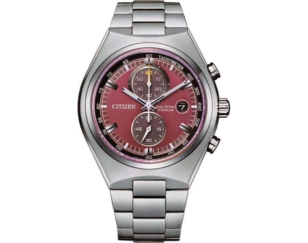 Montre bracelet Citizen Eco-Drive Super-Titanium CA7090-87X pour Homme à Quartz, avec une boîtier de Titane d’un diamètre de 43 mm, avec un cadran Rouge et avec un bracelet de Titane en couleur Argent.