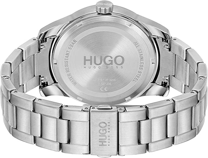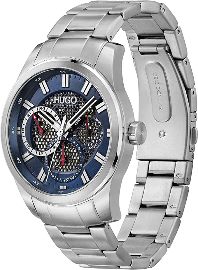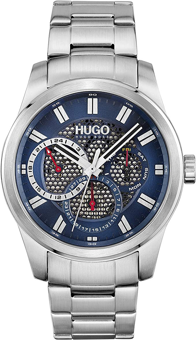 Quartz Man Wristwatch Hugo Boss Skeleton 1530191 with Stainless steel case, with diameter 45 mm, Blue dial and Silver Stainless steel band.