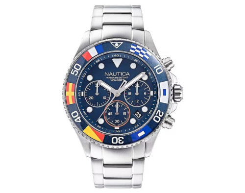 Quartz Man Wristwatch Nautica Crandon Park NAPCPS014 with Stainless steel case, with diameter 46 mm, Blue dial and Blue Silicon band.