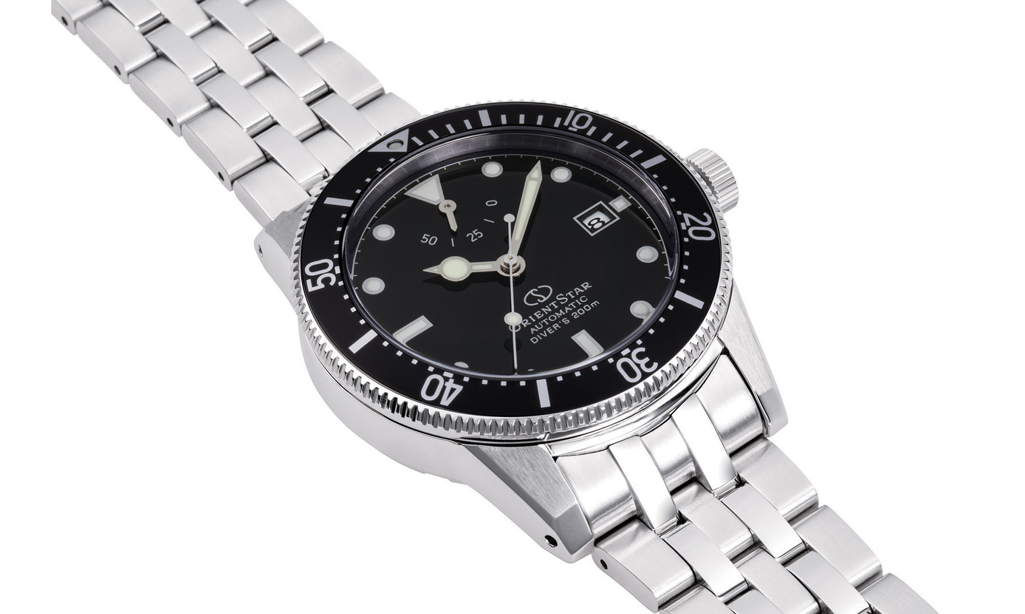 Mechanical Man Wristwatch Orient Star Sports Diver 1964 Mark II M42 RE-AU0601B00B with Stainless steel case, with diameter 41 mm, Black dial and Silver Stainless steel band.