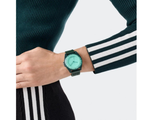 Quartz Unisex Wristwatch Adidas Project Four AOST25527 with Resin case, with diameter 41 mm, Turquoise dial and Green Resin band.