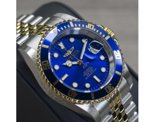 Mechanical Man Wristwatch Invicta Pro Diver 29182 with Stainless steel case, with diameter 42 mm, Blue dial and Two-tone Stainless steel band.