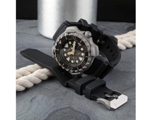Quartz Man Wristwatch Citizen Promaster BN0220-16E with Titanium case, with diameter 46 mm, Black dial and Black Silicon band.