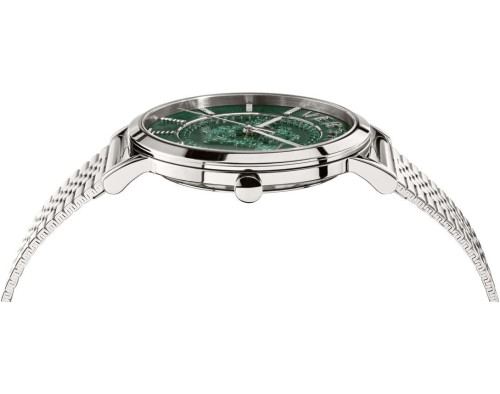 Orologio da polso Versace V-Essential VEJ400921 Analogico Uomo con movimento Al quarzo, cassa in Acciaio inossidabile di diametro 40 mm, quadrante Verde, vetro Minerale con trattamento Zaffiro e cinturino in Acciaio inossidabile di colore Argento.