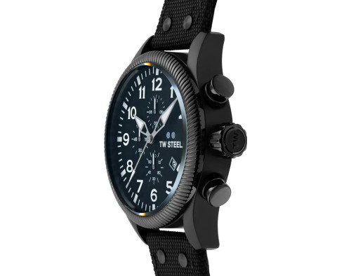 Orologio da polso TW Steel Volante TWVS113 Cronografo Uomo con movimento Al quarzo, cassa in Acciaio inossidabile di diametro 48 mm, quadrante Nero, vetro Minerale con trattamento Zaffiro e cinturino in Tessuto di colore Nero.