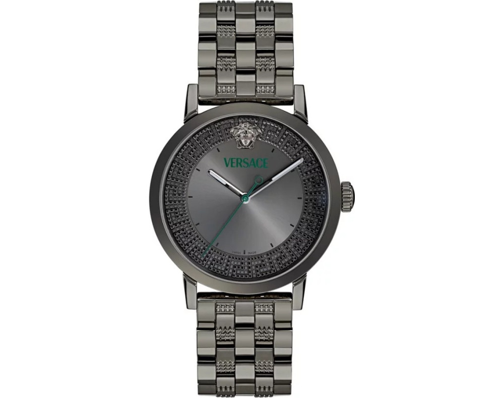 Orologio da polso Versace Albireo VE0T00625 Analogico Uomo con movimento Al quarzo, cassa in Acciaio inossidabile di diametro 40 mm, quadrante Grigio, vetro Minerale con trattamento Zaffiro e cinturino in Acciaio inossidabile di colore Grigio.