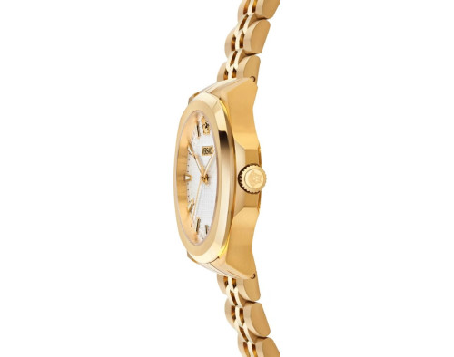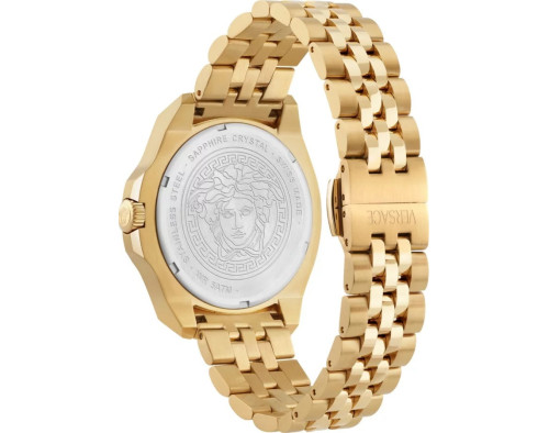 Orologio da polso Versace Luxury VEKKA0625 Analogico Uomo con movimento Al quarzo, cassa in Acciaio inossidabile di diametro 42 mm, quadrante Bianco, vetro Minerale con trattamento Zaffiro e cinturino in Acciaio inossidabile di colore Oro.