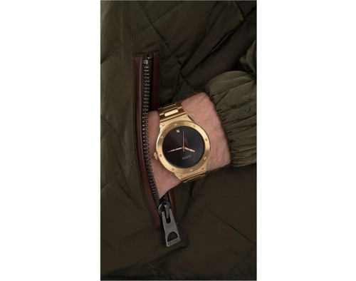 Orologio da polso Guess Scope GW0427G2 Analogico Uomo con movimento Al quarzo, cassa in Acciaio inossidabile di diametro 44 mm, quadrante Nero, vetro Minerale e cinturino in Acciaio inossidabile di colore Oro.