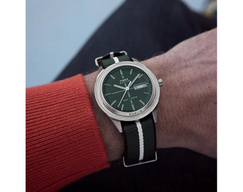Orologio da polso Timex TW2Y37500UK Analogico Uomo con movimento Al quarzo, cassa in Acciaio inossidabile di diametro 38 mm, quadrante Verde, vetro Minerale e cinturino in Tessuto di colore Verde.