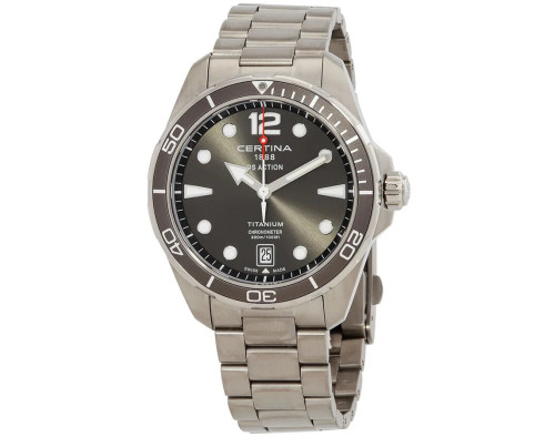 Orologio da polso Certina DS Action C032.451.44.087.00 Analogico Uomo con movimento Al quarzo, cassa in Titanio di diametro 43 mm, quadrante Grigio, vetro Minerale con trattamento Zaffiro e cinturino in Titanio di colore Grigio.