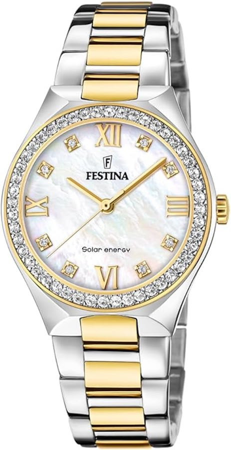 Kvarcas Moteris Rankinis laikrodis Festina F20659/1 su Nerūdijantis plienas dėklu, 35 mm skersmens, Mineralinis stiklas, Perlamutra ciferblatu ir Dviejų atspalvių Nerūdijantis plienas apyranke.