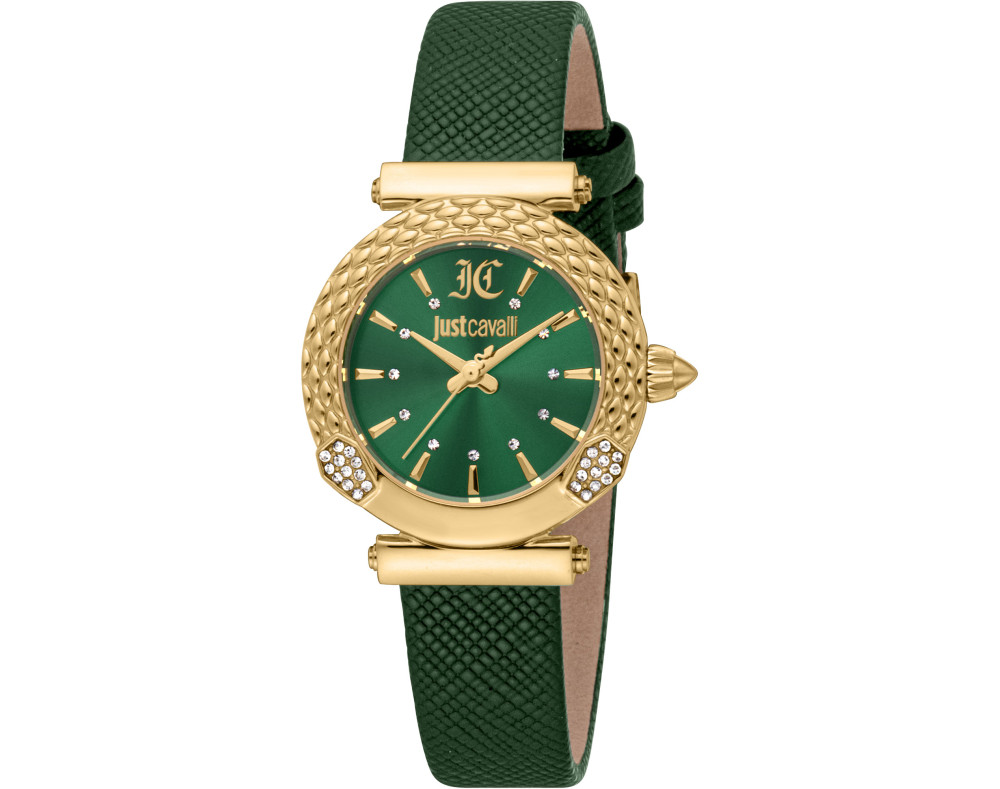 Kvarcas Moteris Rankinis laikrodis Just Cavalli JC1L332L0325 su Nerūdijantis plienas dėklu, 30 mm skersmens, Mineralinis stiklas, Žalias ciferblatu ir Žalias Oda apyranke.