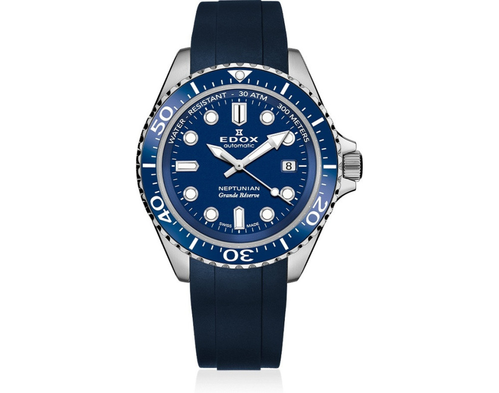 Mechaninis Vyras Rankinis laikrodis EDOX 80801 3BUCAB BUIN su Nerūdijantis plienas dėklu, 42 mm skersmens, Mineralas su safyru stiklas, Mėlyna ciferblatu ir Mėlyna Trintukas apyranke.