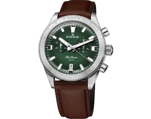 Kvarcas Vyras Rankinis laikrodis EDOX 10116 3 VIDN su Nerūdijantis plienas dėklu, 40 mm skersmens, Mineralas su safyru stiklas, Žalias ciferblatu ir Sidabras Nerūdijantis plienas apyranke.