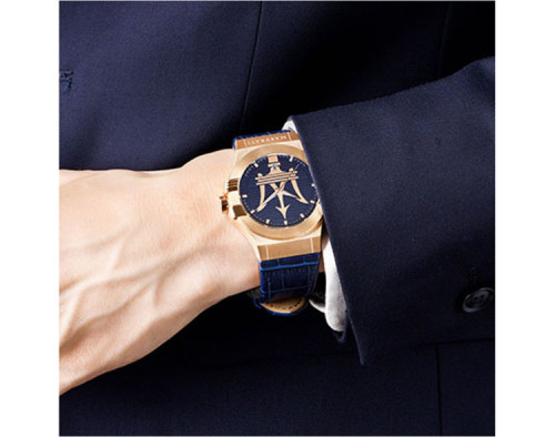 Kvarcas Vyras Rankinis laikrodis Maserati R8851108027 su Nerūdijantis plienas dėklu, 42 mm skersmens, Mineralinis stiklas, Mėlyna ciferblatu ir Mėlyna Oda apyranke.