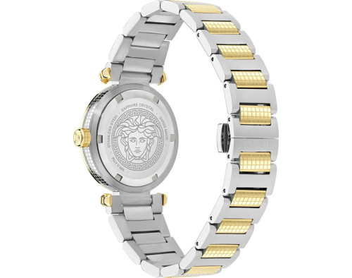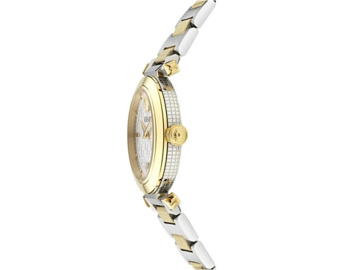 Kvarcas Moteris Rankinis laikrodis Versace VE5B00325 su Nerūdijantis plienas dėklu, 35 mm skersmens, Mineralas su safyru stiklas, Baltas ciferblatu ir Dviejų atspalvių Nerūdijantis plienas apyranke.