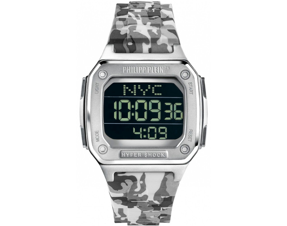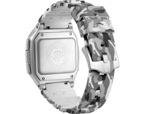 Kvarcas Unisex Rankinis laikrodis Philipp Plein PWHAA1522 su Nerūdijantis plienas dėklu, 44 mm skersmens, Mineralinis stiklas, Sidabras ciferblatu ir Kamufliažas Silikonas apyranke.