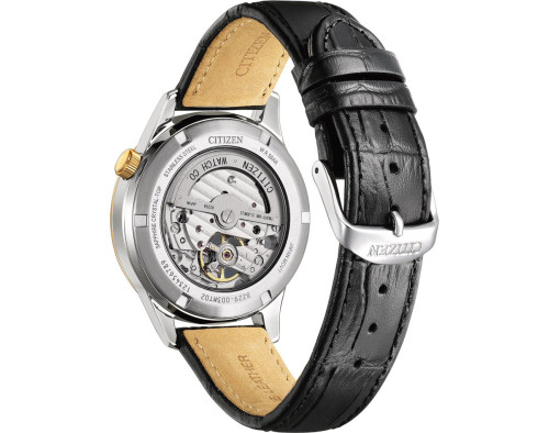 Mechaninis Vyras Rankinis laikrodis Citizen NH9136-02L su Nerūdijantis plienas dėklu, 40 mm skersmens, Mineralas su safyru stiklas, Mėlyna ciferblatu ir Juoda Oda apyranke.