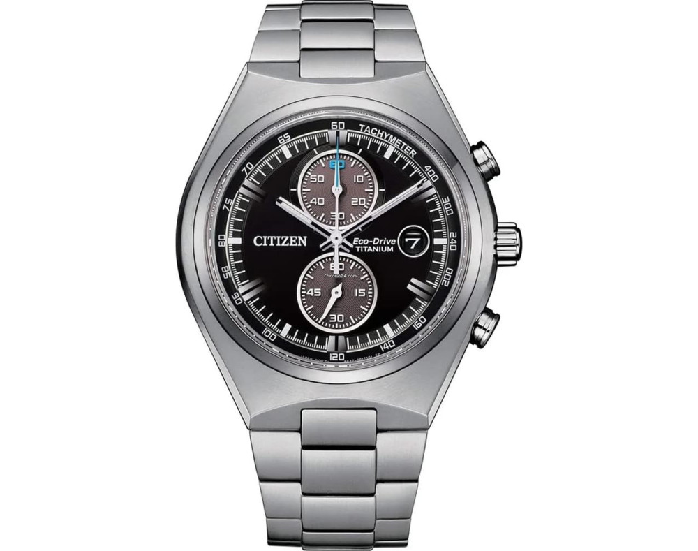 Kvarcas Vyras Rankinis laikrodis Citizen CA7090-87E su Titanas dėklu, 43 mm skersmens, Mineralas su safyru stiklas, Juoda ciferblatu ir Sidabras Titanas apyranke.