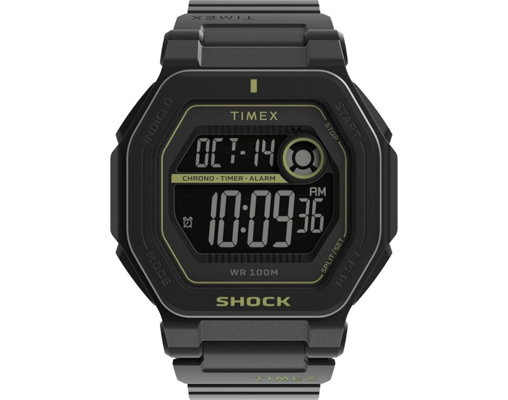 Kvarcas Vyras Rankinis laikrodis Timex TW2V59800UK su Derva dėklu, 45 mm skersmens, Akrilas stiklas, Juoda ciferblatu ir Juoda Derva apyranke.