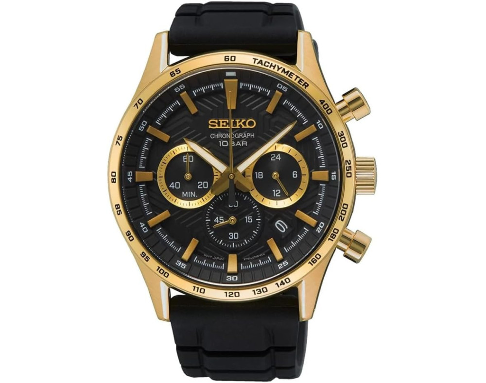 Kvarcas Vyras Rankinis laikrodis Seiko SSB446P1 su Nerūdijantis plienas dėklu, 42 mm skersmens, Mineralas su safyru stiklas, Juoda ciferblatu ir Juoda Silikonas apyranke.