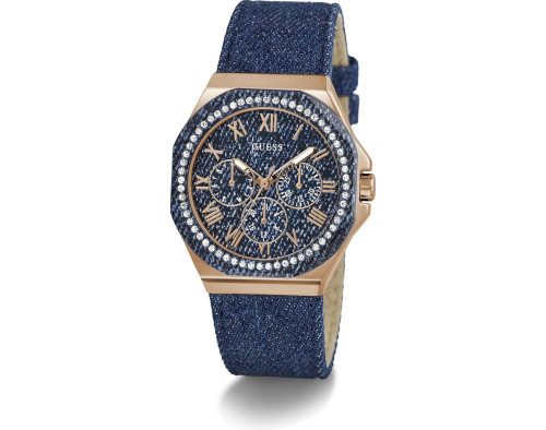 Kvarcas Moteris Rankinis laikrodis Guess GW0753L5 su Nerūdijantis plienas dėklu, 36 mm skersmens, Mineralinis stiklas, Mėlyna ciferblatu ir Mėlyna Oda apyranke.