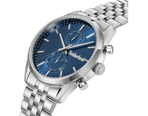 Kvarcs Cilvēks Rokas pulkstenis Timberland TDWGI0068701 ar Nerūsējošais tērauds korpusu, ar diametru 43 mm, Minerāls stikls, Zils ciparnīcu un Sudrabs Nerūsējošais tērauds siksnu.