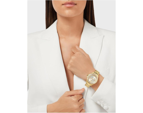Kvarcs Sieviete Rokas pulkstenis Philipp Plein PWPOA0624 ar Nerūsējošais tērauds korpusu, ar diametru 38 mm, Minerāls stikls, Zelts ciparnīcu un Zelts Nerūsējošais tērauds siksnu.