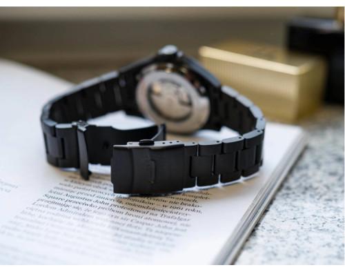Mehānisks Cilvēks Rokas pulkstenis Swiss Alpine Military SAM7095.2177 ar Nerūsējošais tērauds korpusu, ar diametru 44 mm, Minerāls ar safīru apstrādi stikls, Melns ciparnīcu un Melns Nerūsējošais tērauds siksnu.