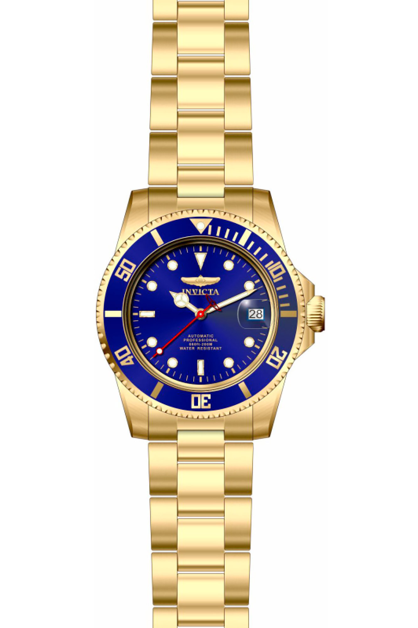 Mehānisks Cilvēks Rokas pulkstenis Invicta 47644 ar Nerūsējošais tērauds korpusu, ar diametru 40 mm, Minerāls stikls, Zils ciparnīcu un Zelts Nerūsējošais tērauds siksnu.