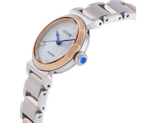 Kvarcs Sieviete Rokas pulkstenis Citizen EM1136-87D ar Nerūsējošais tērauds korpusu, ar diametru 26 mm, Minerāls ar safīru apstrādi stikls, Pērļu māte ciparnīcu un Divu toņu Nerūsējošais tērauds siksnu.