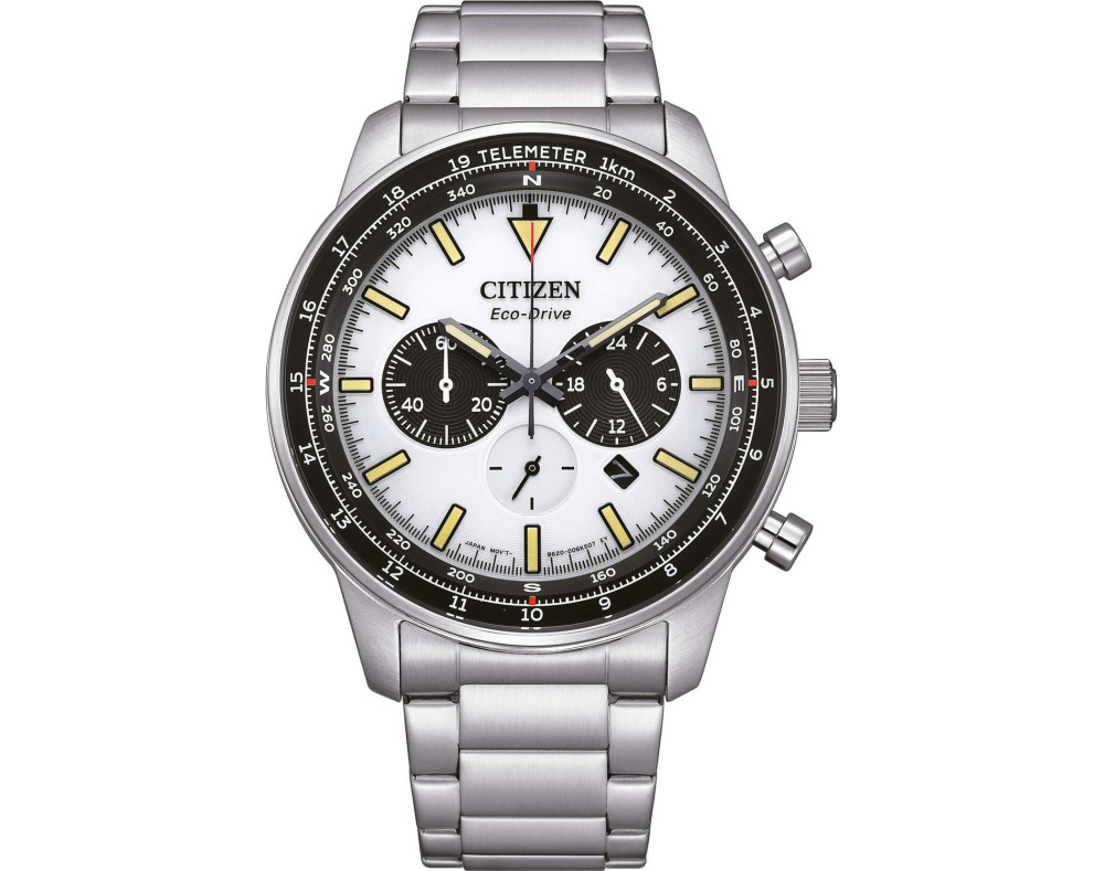 Kvarcs Cilvēks Rokas pulkstenis Citizen CA4500-91A ar Nerūsējošais tērauds korpusu, ar diametru 44 mm, Minerāls stikls, Balts ciparnīcu un Sudrabs Nerūsējošais tērauds siksnu.