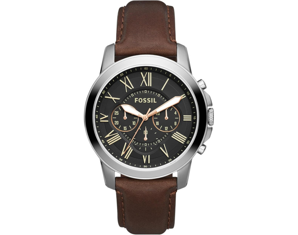 Кварц Мужчина Наручные часы Fossil FS4813, корпус Нержавеющая сталь, диаметр 44 mm, Минеральная стекло, Черный циферблат и Коричневый Кожа ремешок.