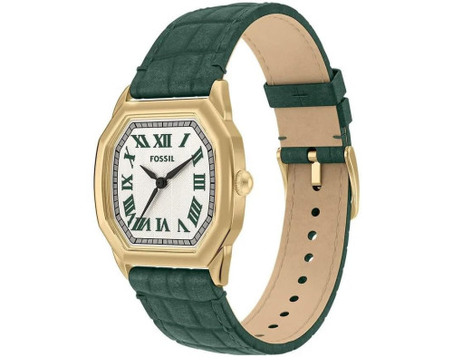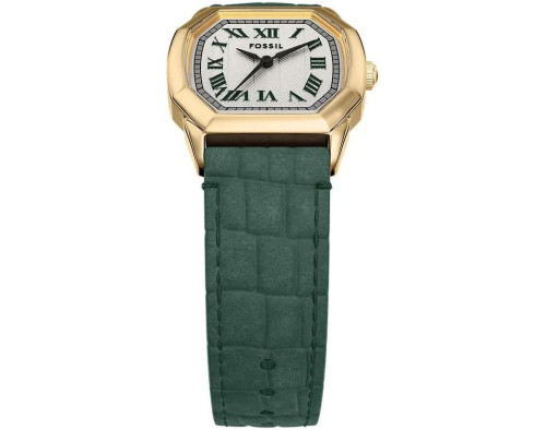 Кварц Женщина Наручные часы Fossil ES5427, корпус Нержавеющая сталь, диаметр 27 mm, Минеральная стекло, Бежевый циферблат и Зеленый Кожа ремешок.