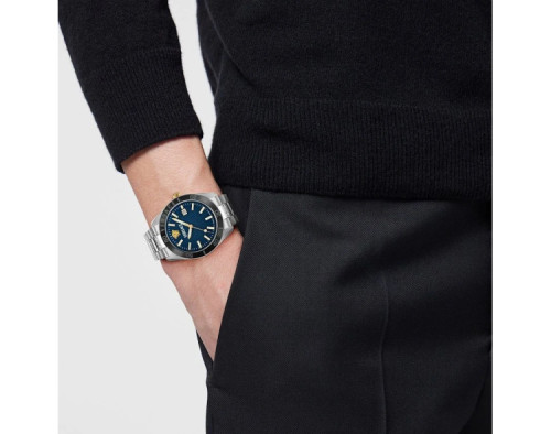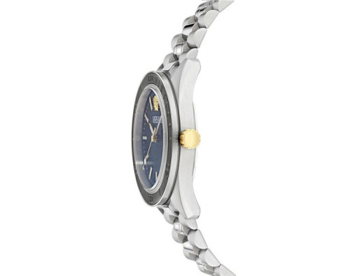 Кварц Мужчина Наручные часы Versace VE8E00324, корпус Нержавеющая сталь, диаметр 42 mm, Минерал с обработкой сапфиром стекло, Синий циферблат и Серебро Нержавеющая сталь ремешок.