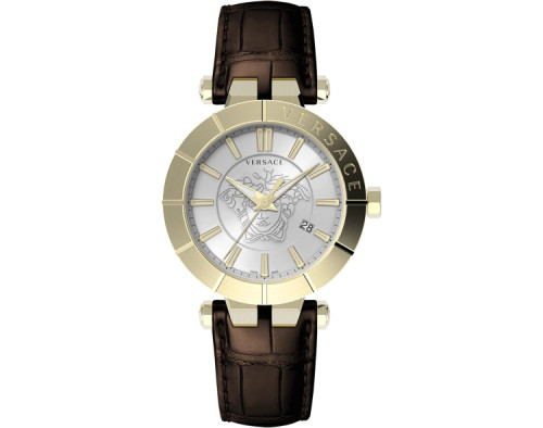 Кварц Женщина Наручные часы Versace VEVC00419, корпус Нержавеющая сталь, диаметр 38 mm, Минерал с обработкой сапфиром стекло, Черный циферблат и Серебро Нержавеющая сталь ремешок.