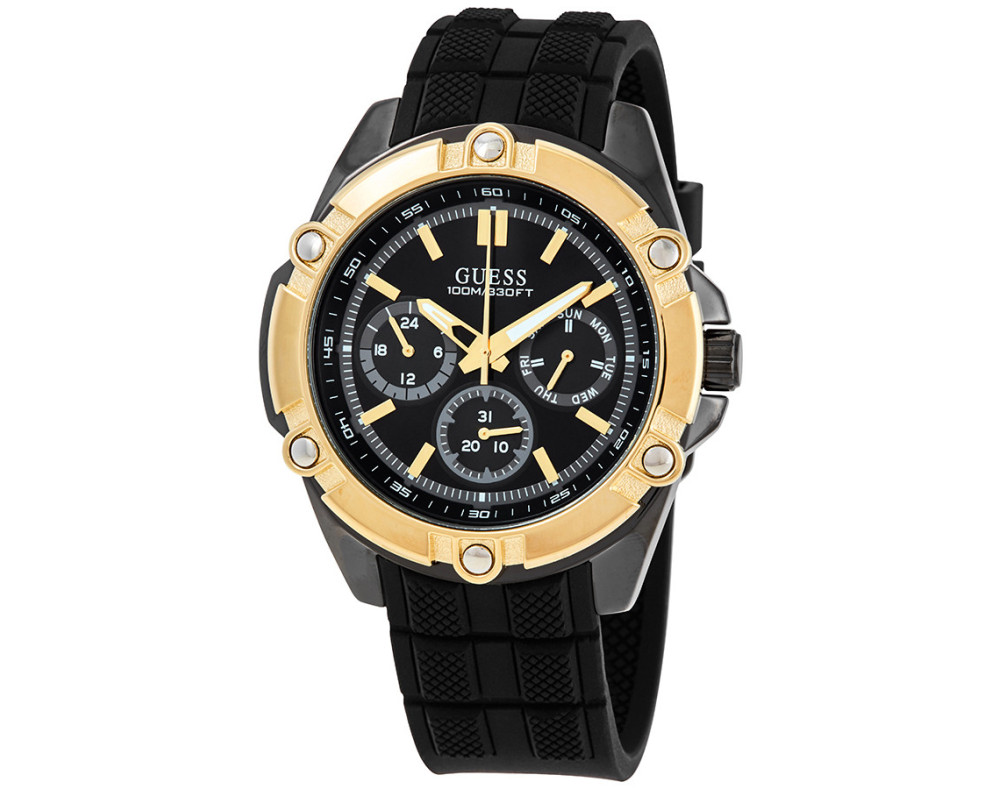 Кварц Мужчина Наручные часы Guess W1302G2, корпус Нержавеющая сталь, диаметр 47 mm, Минеральная стекло, Черный циферблат и Черный Силикон ремешок.