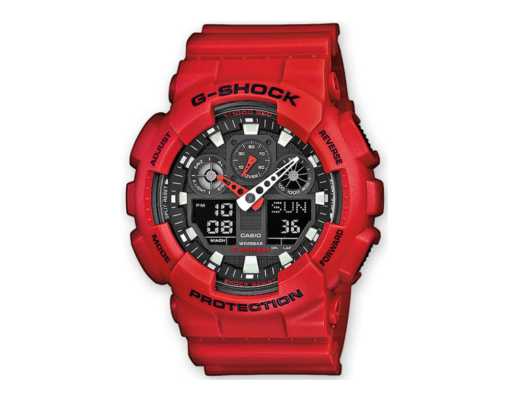 Кварц Мужчина Наручные часы Casio G-Shock GA-100B-4AER, корпус Смола, диаметр 51 mm, Минеральная стекло, Черный циферблат и Красный Смола ремешок.
